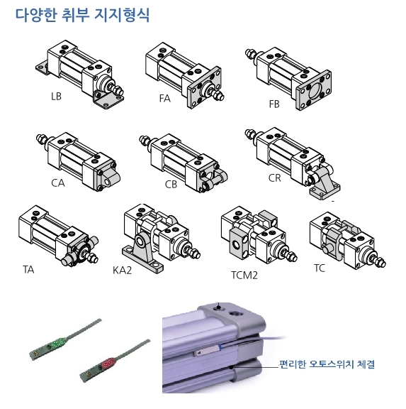 | 플레이트 실린더 | 더블 로드 실린더 | 자유 설치 실린더 | 오토스위치 악세서리 금구 |