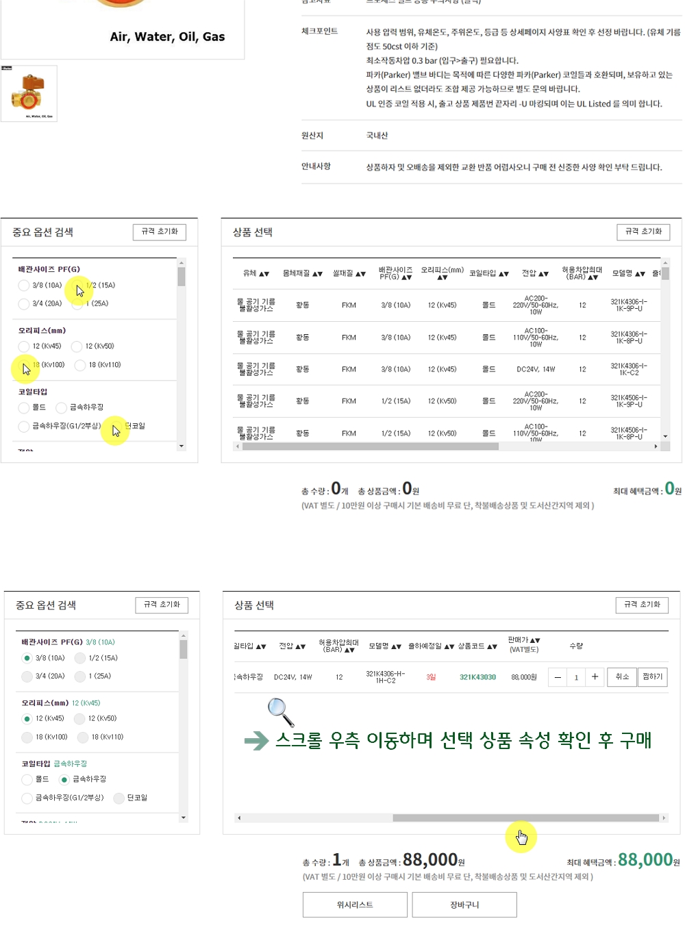 신규 상품의 구매 시, 필요 사양 제품 선정을 중요 옵션 선택 기능으로 보다 빠르게 확인 가능합니다.