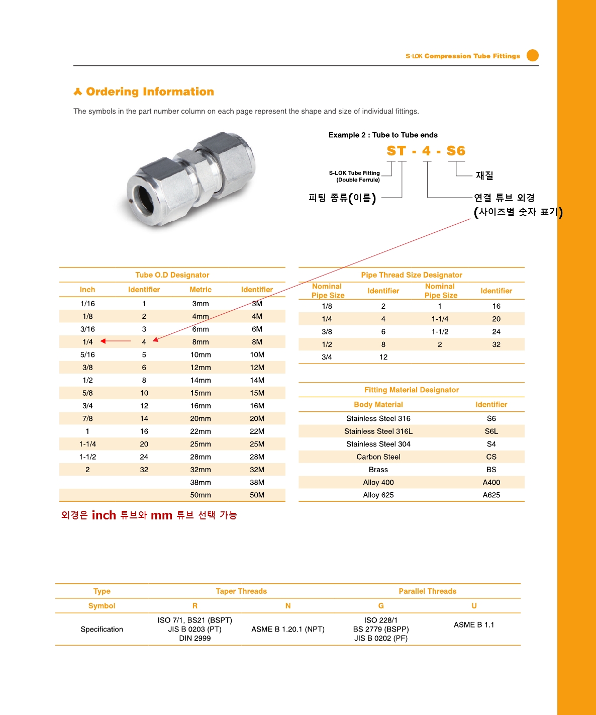 S-Lok 튜브 피팅 선정 방법 (튜브-튜브)