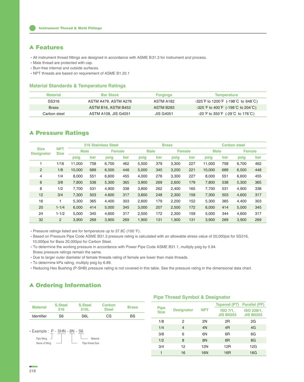 [참고자료] S-Lok Instrument Thread & Welding 피팅 Data 및 선정 방법