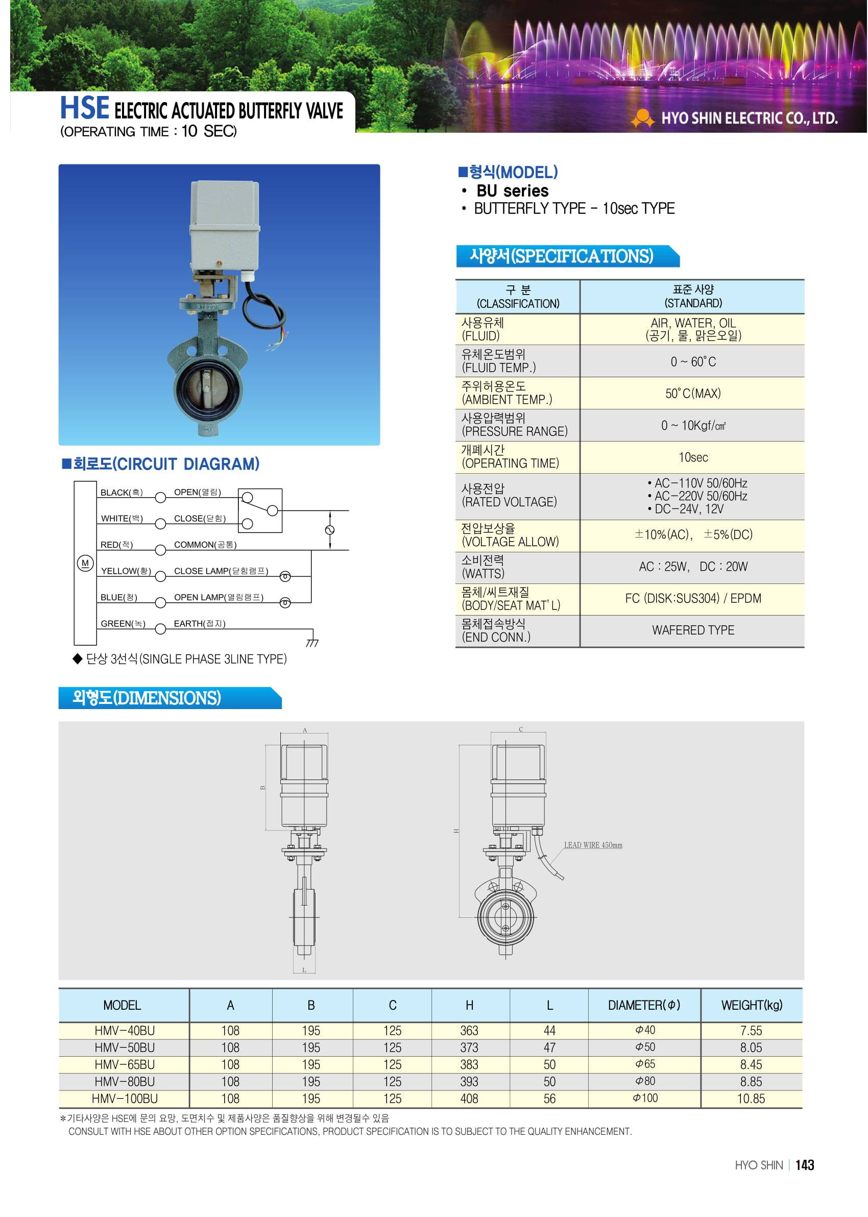 [HMV BU 시리즈] 사이즈 40A~125A, 개폐시간 10초, 0~10 kgf/cm2