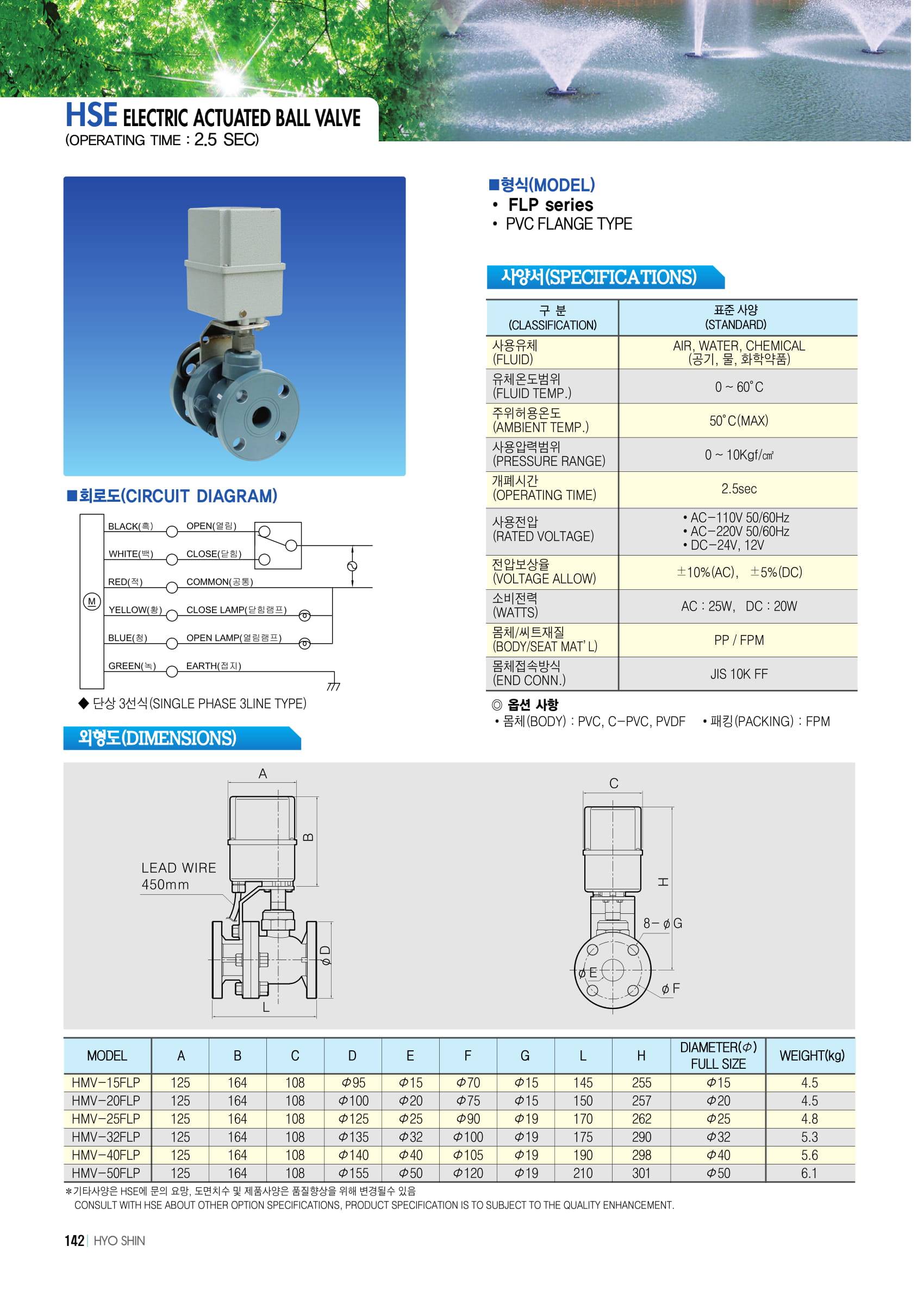 [HMV FLP 시리즈] 사이즈 15A~50A, 개폐시간 2.5초, 화학약품용 0~10 kgf/cm2