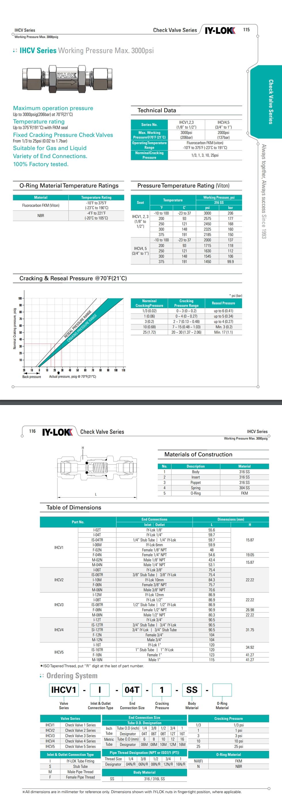 [IHCV 시리즈] 체크 밸브 / inch 튜브용