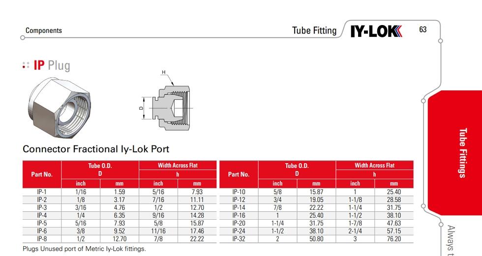 재질: 316 / 316L Stainless Steel 사이즈: 1/8″ ~ 2″, 2mm ~ 38mm Tube OD 최대사용압력: 9,000psig @ 38°C 사용온도: -196°C ~ 648°C 기타: Double Ferrule Compression Tread Types (NPT, PT, PF) |