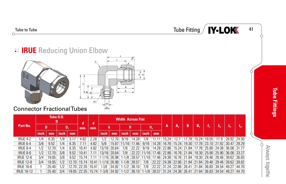 [IRUE 시리즈] 레듀싱 유니온 엘보 / inch 튜브용
