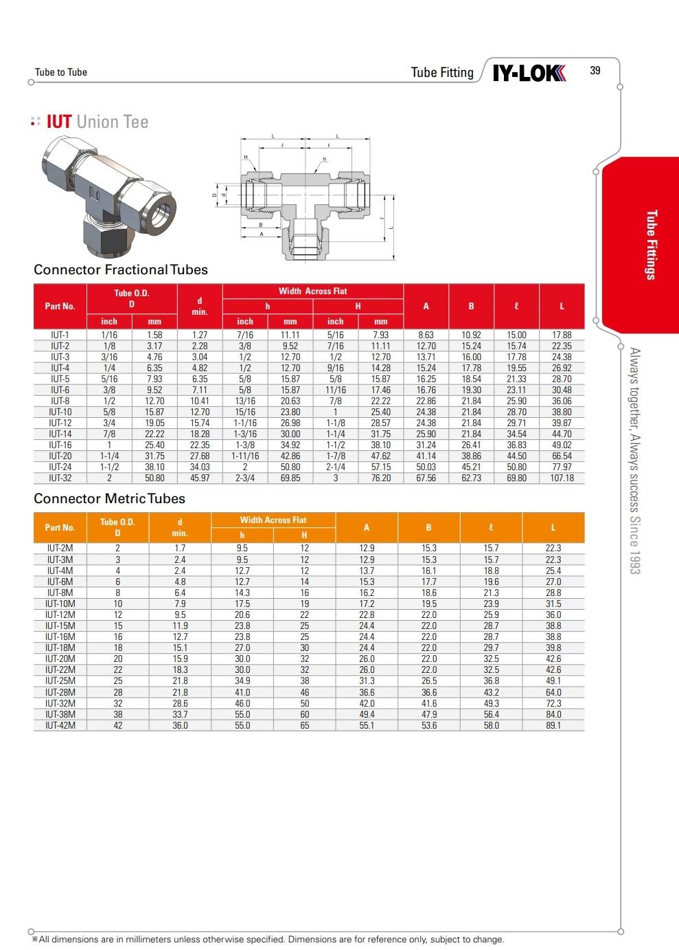 [IUT 시리즈] 유니온 티 / inch 튜브용