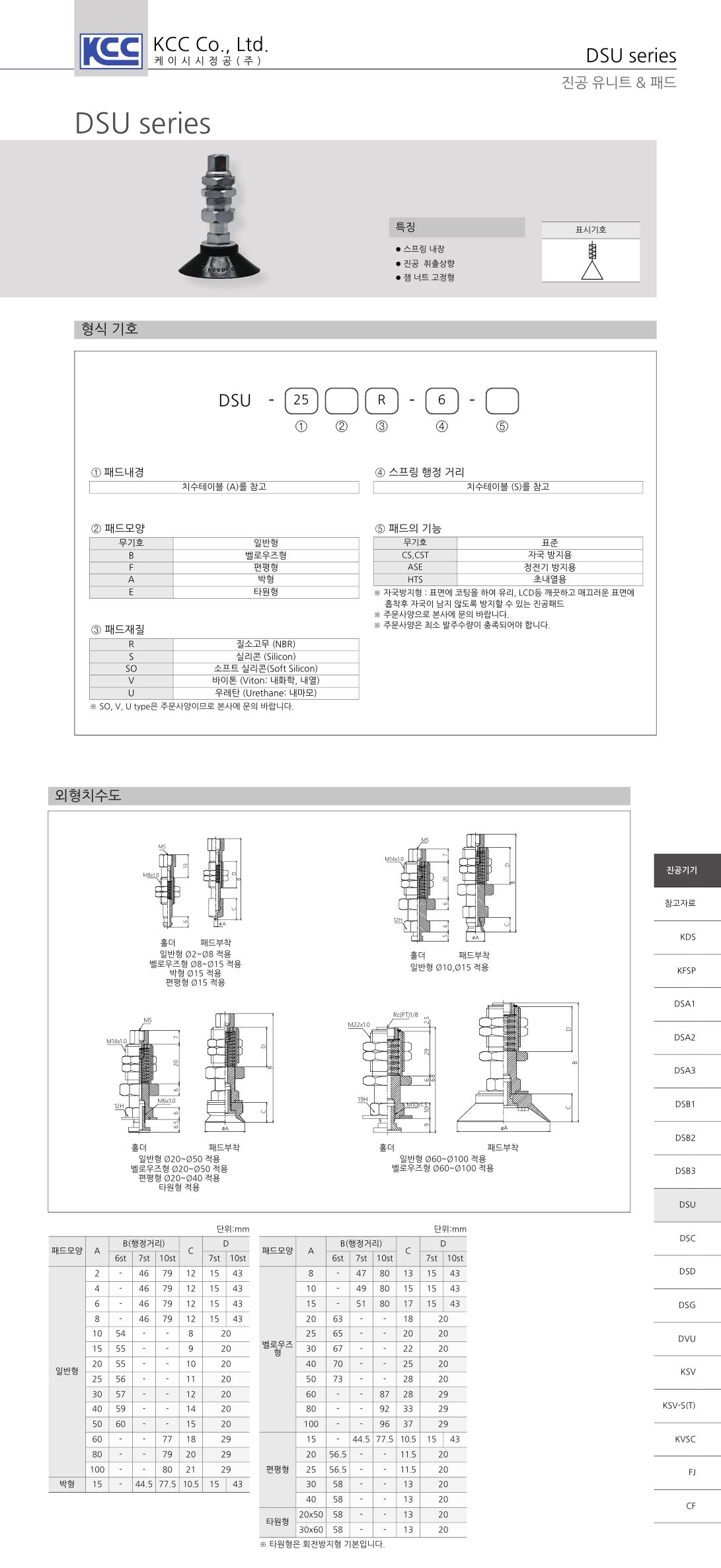 DSU 진공유니트 / 패드경-패드모양-패드재질-스프링행정거리