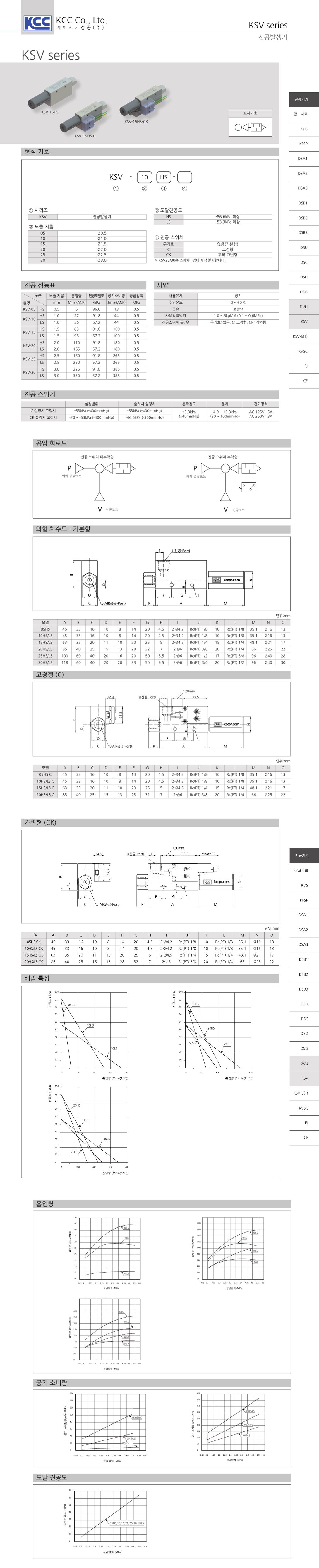 KSV 진공발생기 / 노즐지름-도달진공도-진공스위치