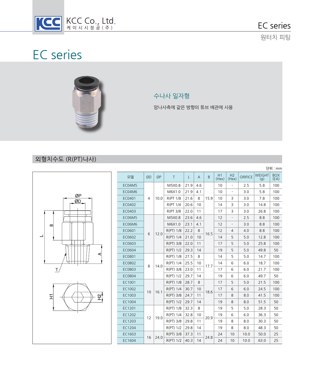 수나사 일자형 / 튜브(metric)-수나사R(PT)