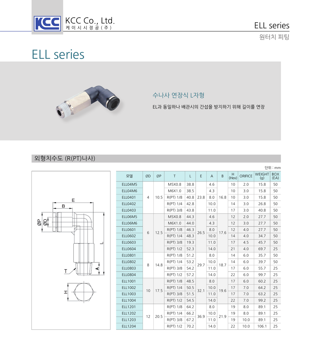 수나사 연장식 L자형 / 튜브(metirc)-수나사R(PT)