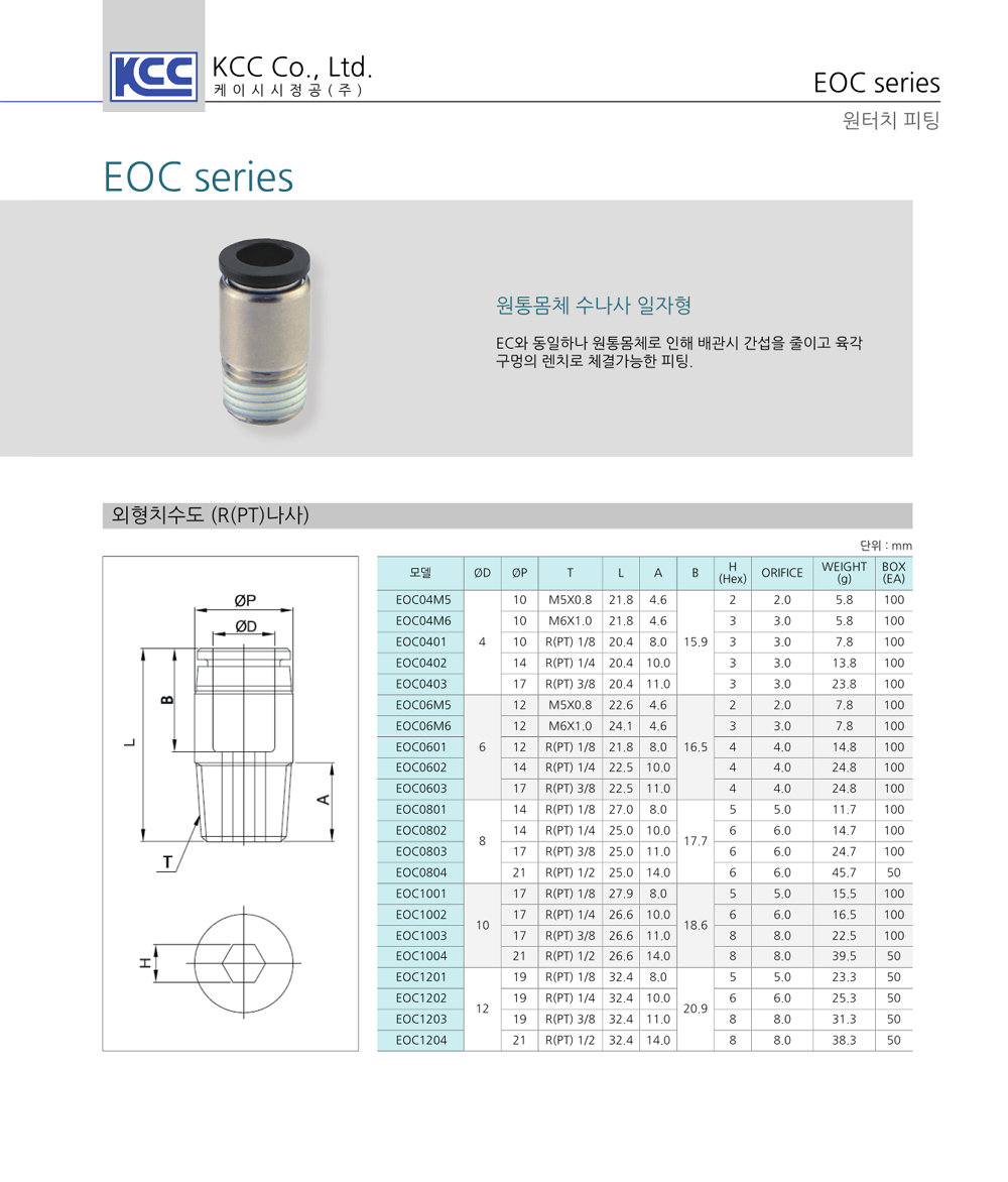 원터치 피팅 One-touch Fitting 한번의 동작으로 튜브를 밀어넣어 손쉽게 탈착할 수 있습니다. 나사부는 형식에 따라 가스켓, 오링 및 테프론 처리가 되어 있습니다. 공기압 배관에 사용하는 원터치식 관 연결구 입니다. 사용자의 환경에 따라 다양하게 사용할 수 있습니다. |