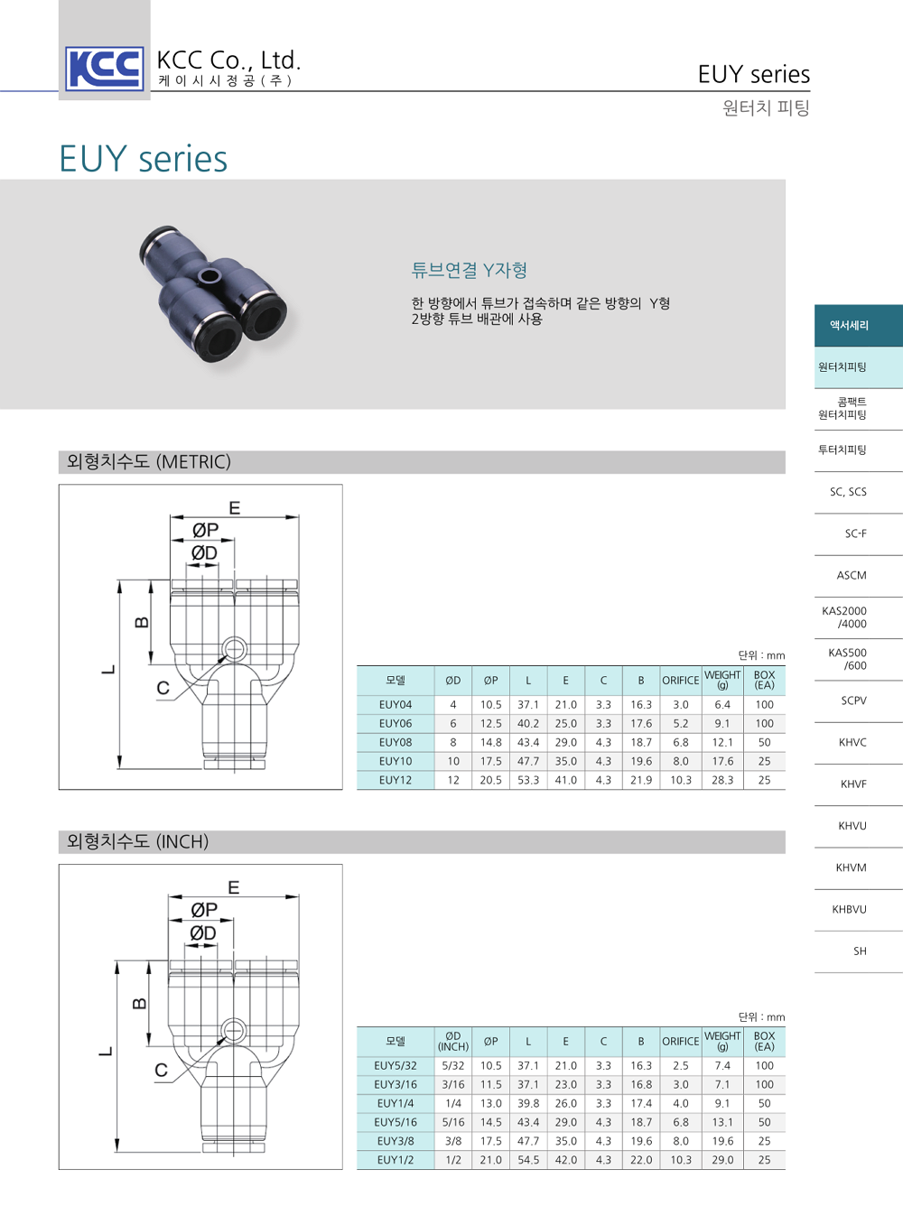 적용튜브외경 INCH타입은 별도 문의 바랍니다.