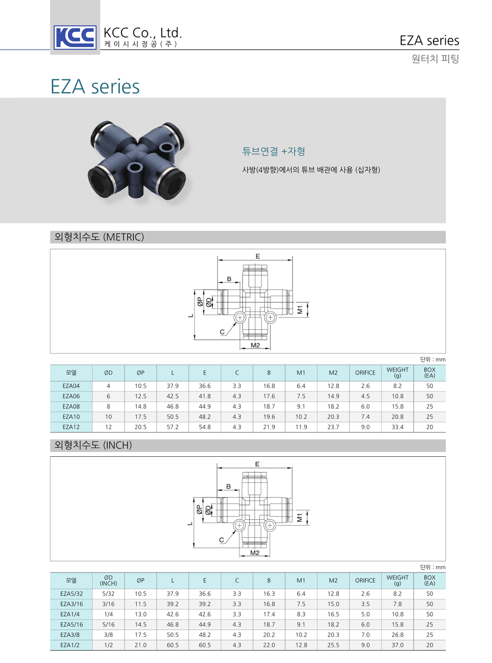 원터치 피팅 One-touch Fitting 접속 튜브 연결 가능한 크로스 십자형 피팅입니다. (끝단 튜브 사이즈 동일) 한번의 동작으로 튜브를 밀어넣어 손쉽게 탈착할 수 있습니다. 적용튜브외경 INCH타입은 별도 문의 바랍니다. 동계불가 타입은 별도 문의 바랍니다. |