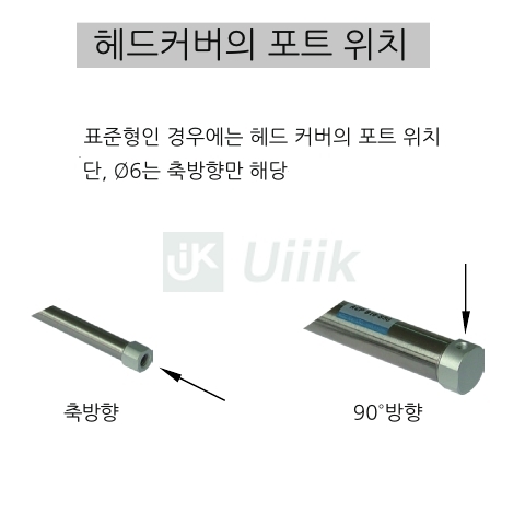 소형 핀 실린더 ACP 시리즈 자석내장 표준형 무급유 패킹 표준 내장 컴팩트한 구조 부착정도 향상 피스톤 로드 처짐 작음 헤드커버포트 6파이 축방향(표준), 10파이 축방향90도(표준) |