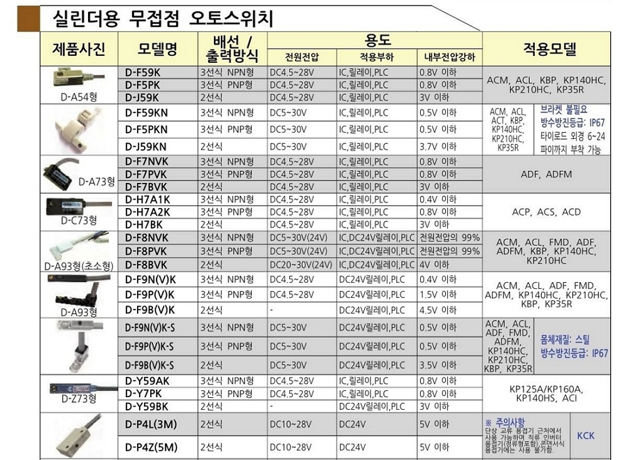 적용 실린더모델, 부착 방법 참고하시어 선정 바랍니다.