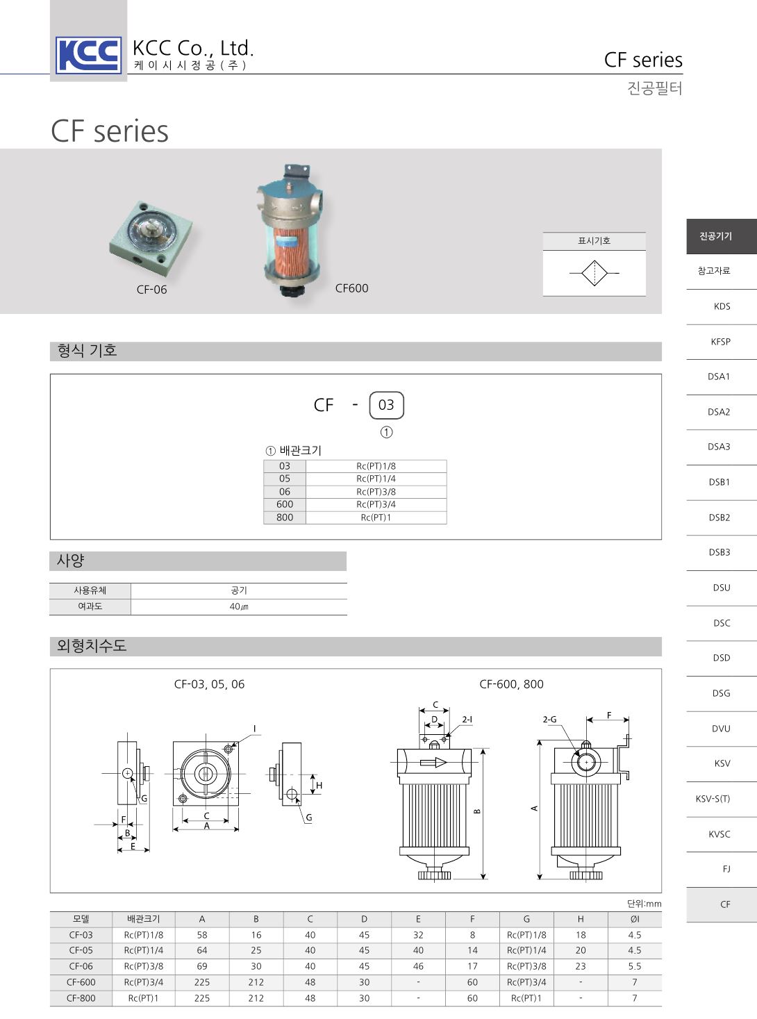 CF 진공필터 / 배관크기