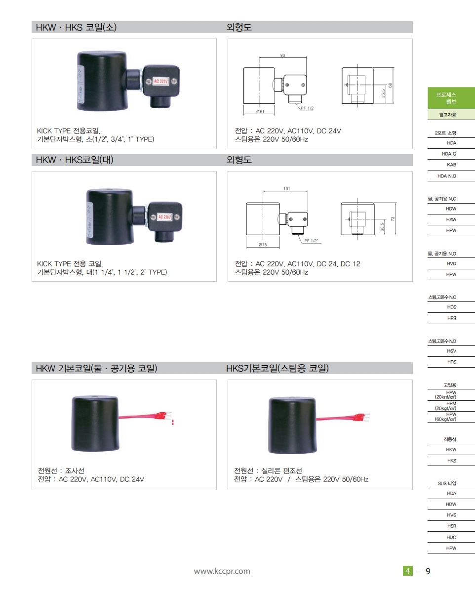 HKW KHS 시리즈용 코일 단품 구매 (밸브 몸체 별도) 코일 소형 1/2 ~ 1 인치 밸브 사이즈 적용 코일 대형 1_1/4 ~ 2 인치 밸브 사이즈 적용 |