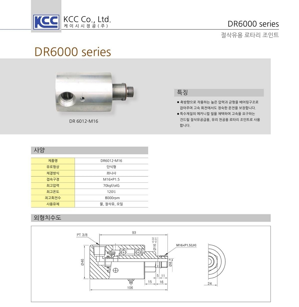 DR6000 시리즈 절삭유용 단식 70 kgf/cm2G, 8,000 rpm 밸런스씰