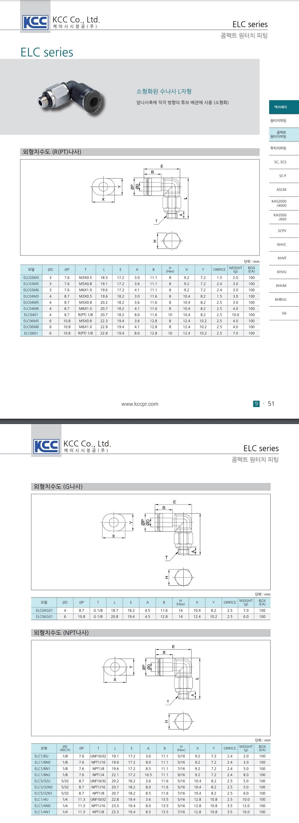 ELC 소형 수나사 엘자형 / 튜브(metric)-나사R(PT)