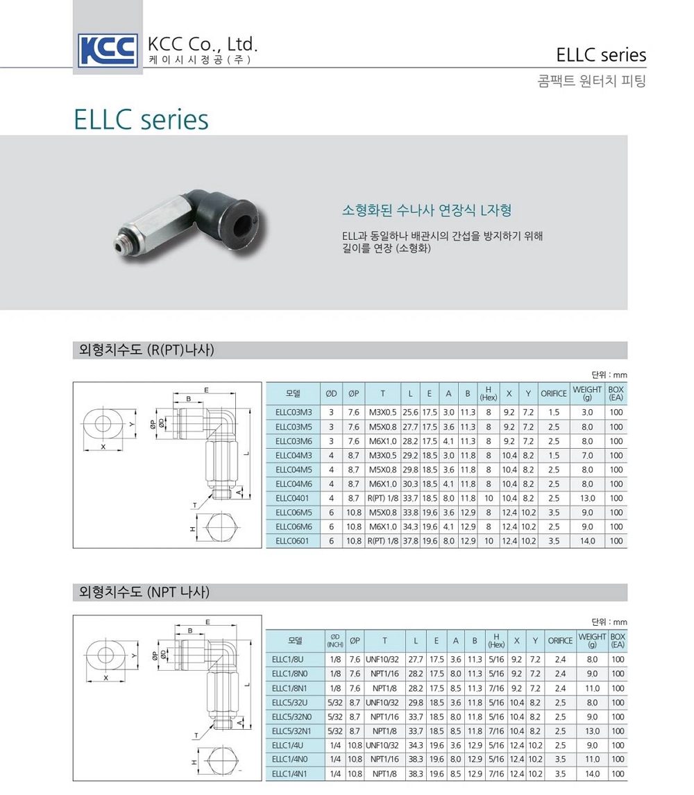 ELLC 소형 수나사 연장식 L자형 / 튜브(metric)-나사R(PT)