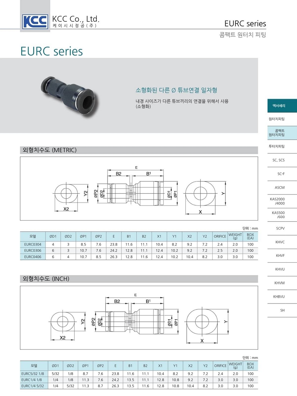 EURC 소형 이경 튜브연결 일자형 / 튜브(metric)-튜브(metric)
