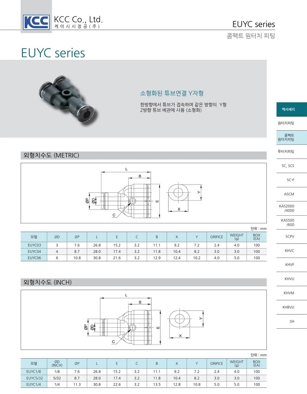 EUYC 소형 튜브연결 Y자형 / 튜브(metric)-튜브(metric)