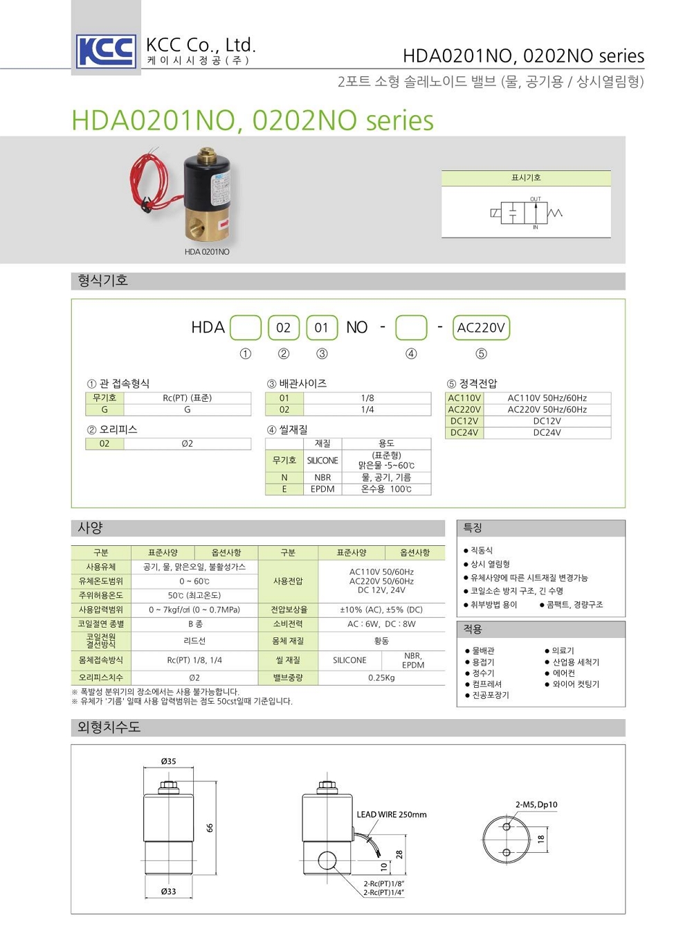 HDA 0201 0202 시리즈 상시열림 소형 2포트 Rc(PT) 1/8 1/4