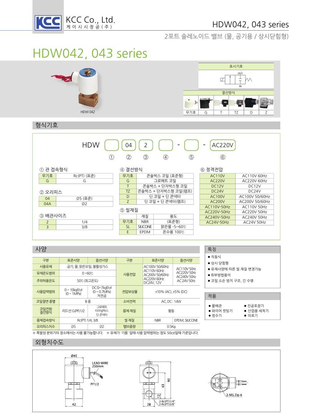 HDW 042 043 시리즈 Rc(PT) 1/4 3/8 소형 2포트