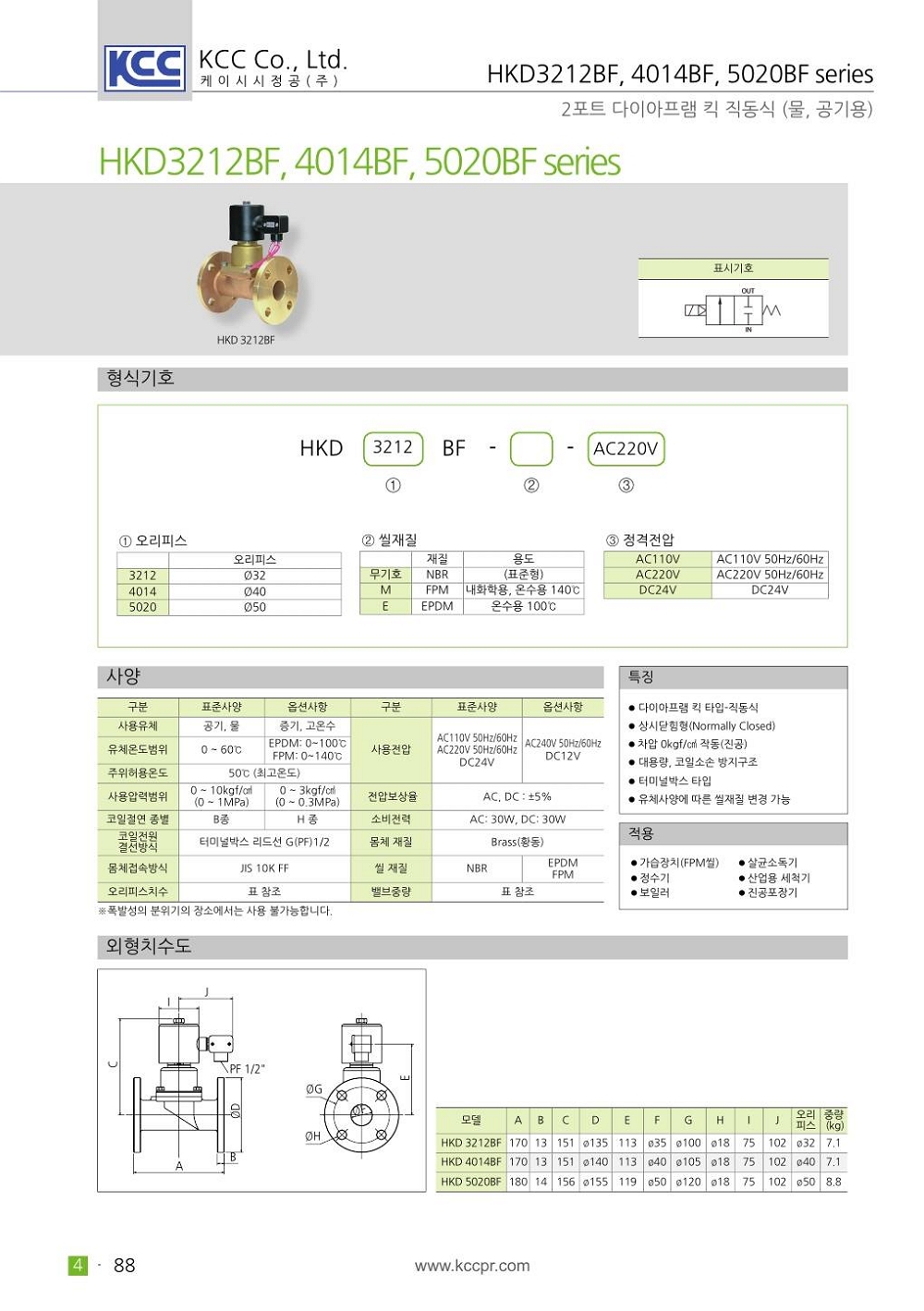 HKD 3212BF 4014BF 5020BF 시리즈 2포트 플랜지 1-1/4 ~ 2 인치