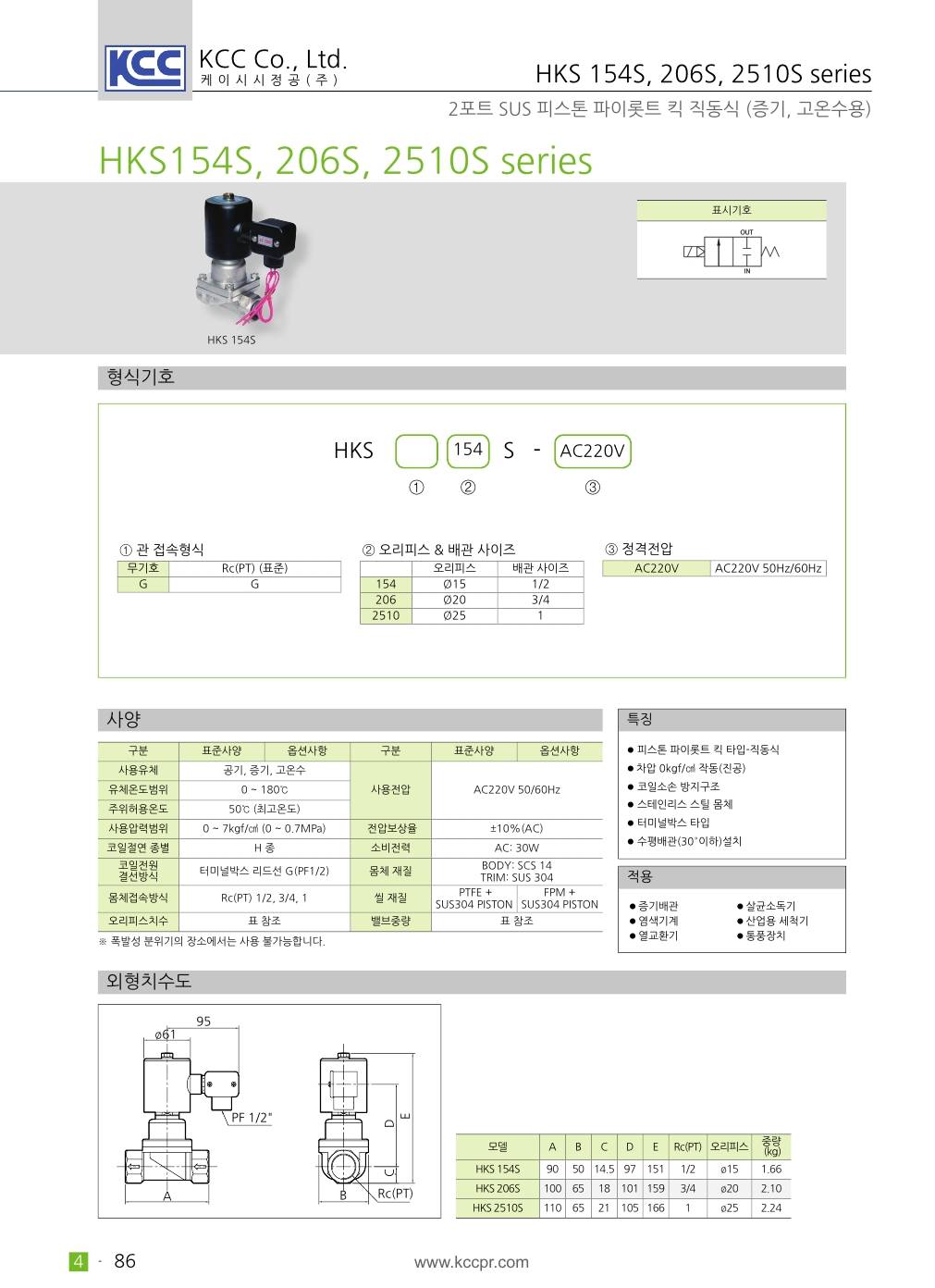 HKS 154B 206B 2510B 시리즈 2포트 암나사 Rc(PT) 1/2 ~ 1인치