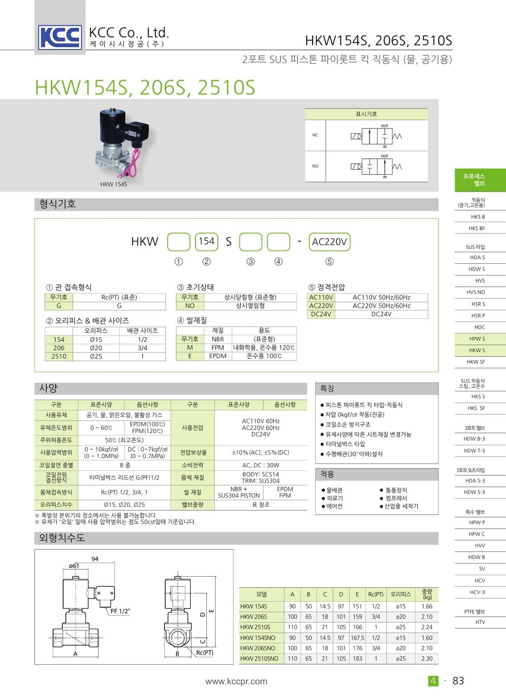 HKW 154S 206S 2510S 시리즈 STS304 몸체, 2포트 암나사 Rc(PT) 1/2 ~ 1 인치