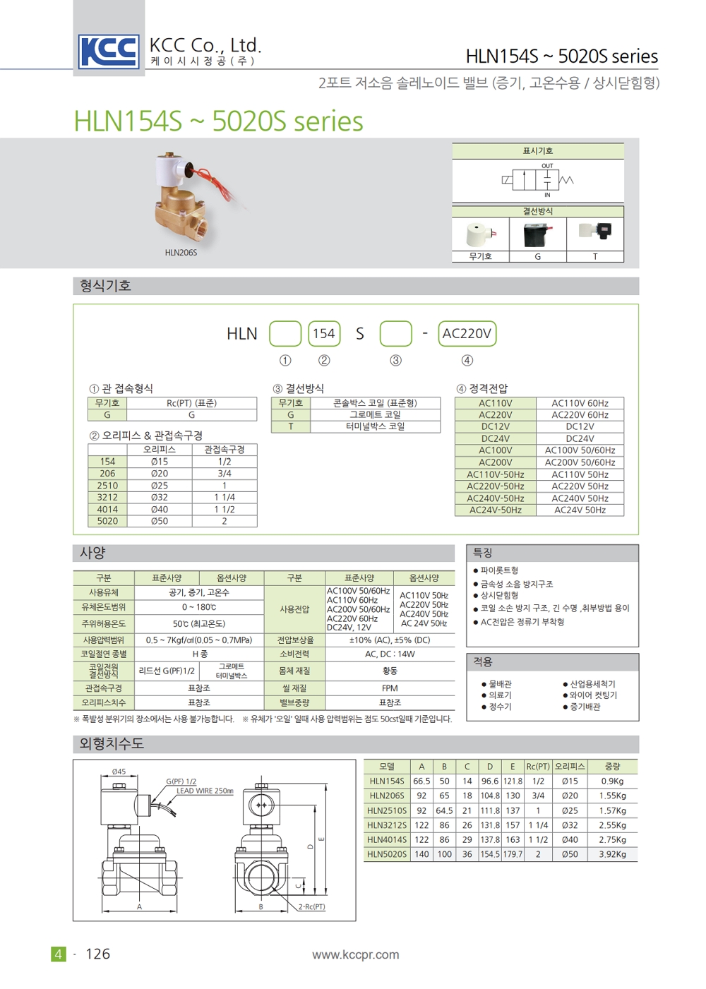 HLN 154S ~2510S 시리즈 저소음 2포트 암나사 Rc(PT) 1/2, 3/4, 1인치