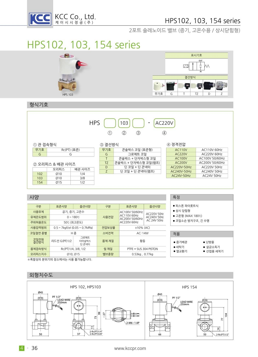 HPS 102DC 103DC 154DC 시리즈 DC 전용 2포트 암나사 Rc(PT) 1/4, 3/8, 1/2 max 180도