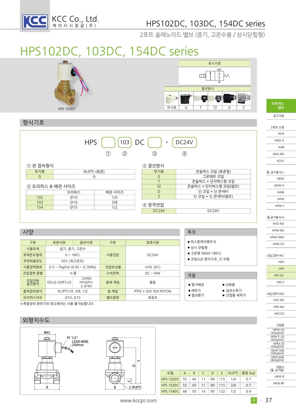 HPS 102DC 103DC 154DC 시리즈 DC 전용 2포트 암나사 Rc(PT) 1/4, 3/8, 1/2 max 180도