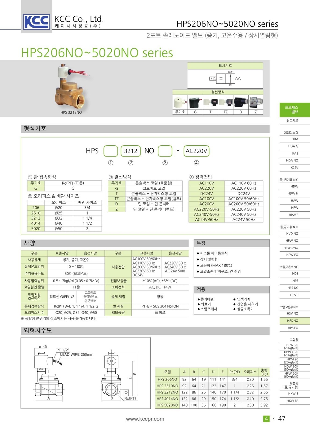 피스톤 파이롯트식 상시열림형 고온형 max 180도 최소작동차압 0.5kgf/cm2 (입구>출구) 필요 코일 소손 방지 구조 및 긴 수명 |
