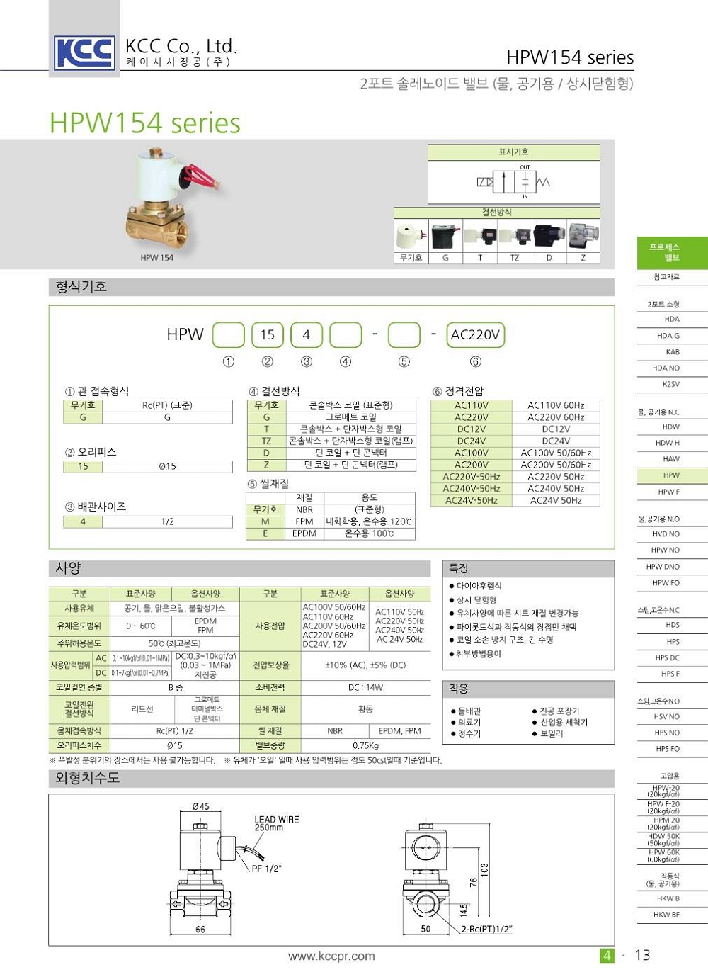 HPW 154-60 시리즈 Rc(PT) 1/2 (15A), 고압 max 60kgf