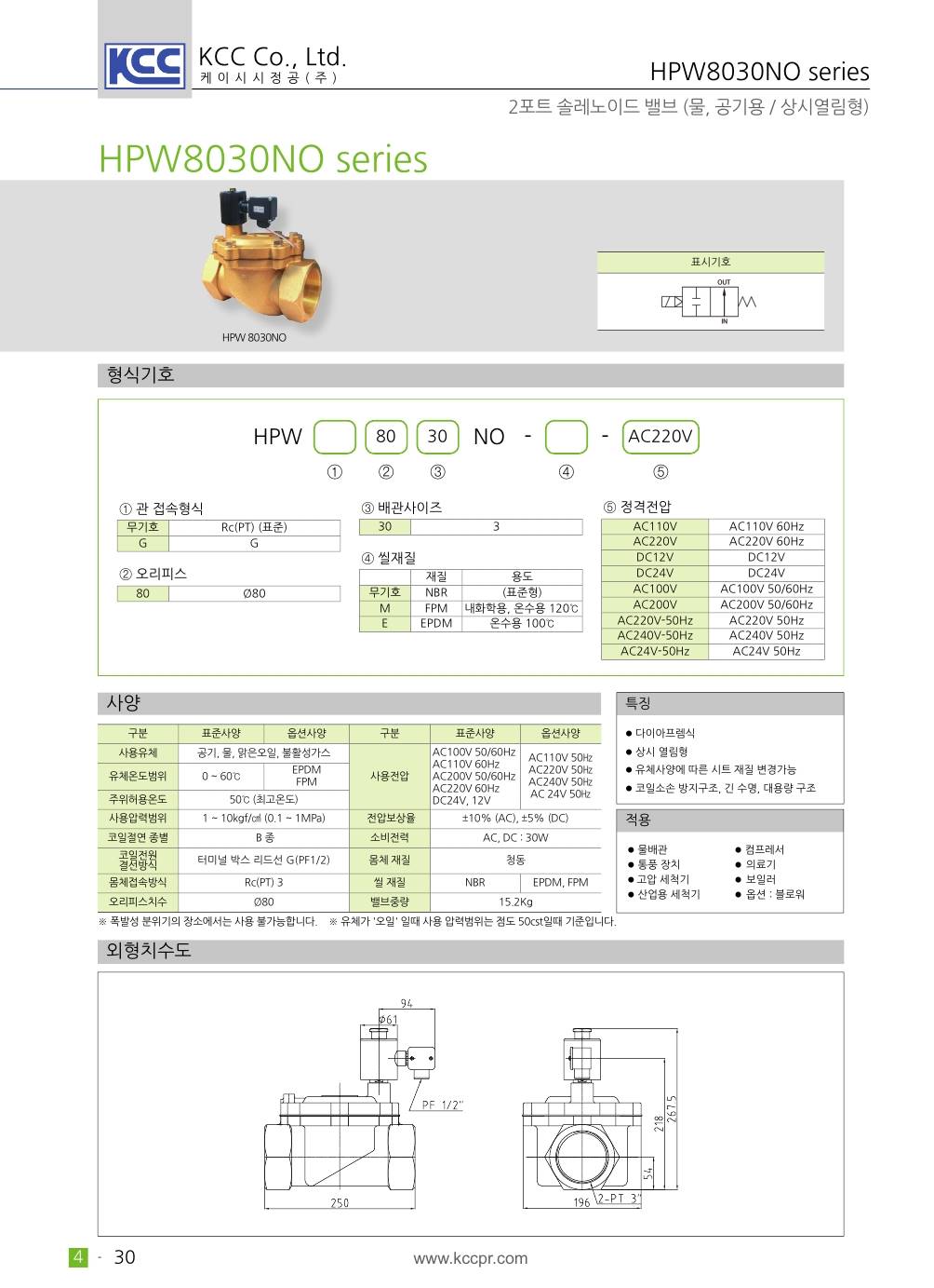HPW 8030 시리즈 2포트 암나사 상시열림 Rc(PT) 3인치 (80A)