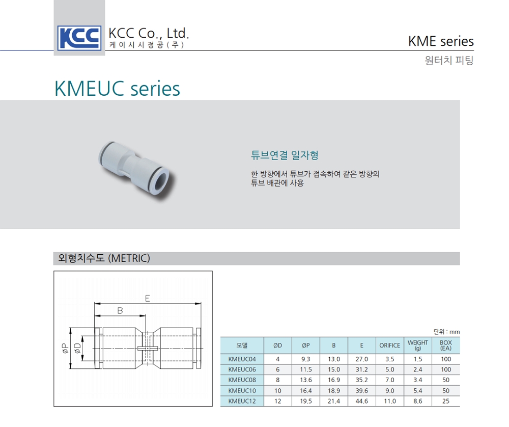튜브연결 일자형 (아이보리) / 튜브(metric)-튜브(metric)
