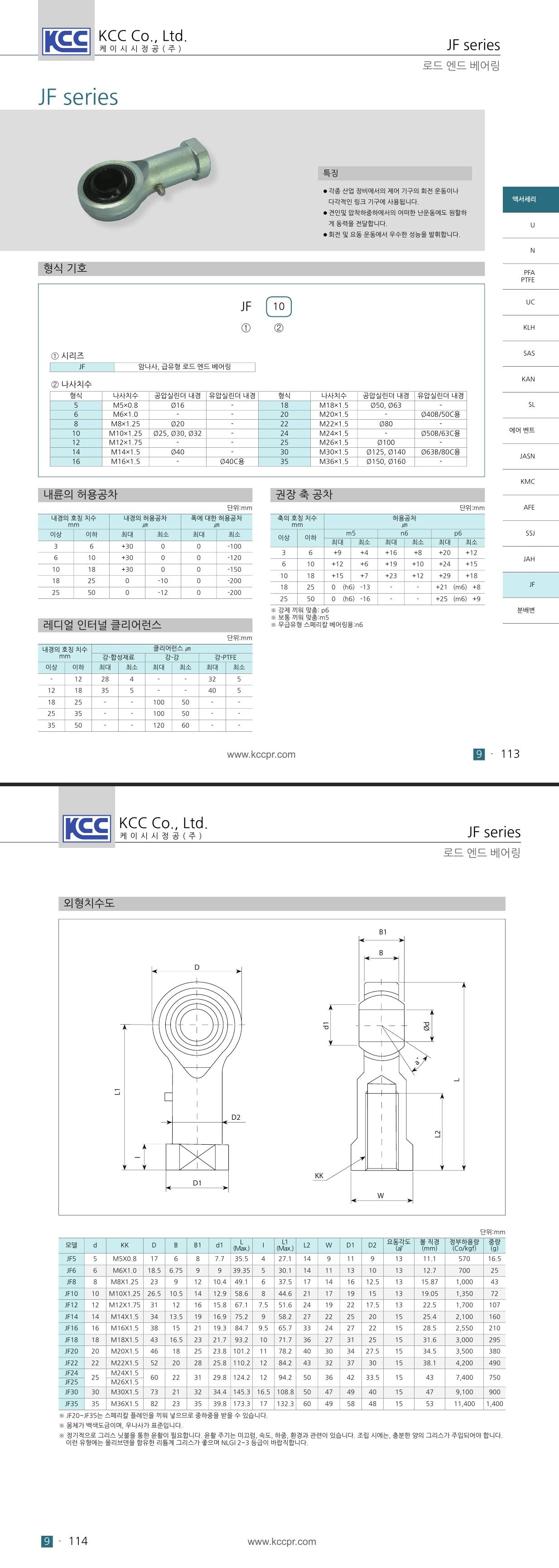 [KCC 실린더 악세서리] 로드 엔드 베어링
