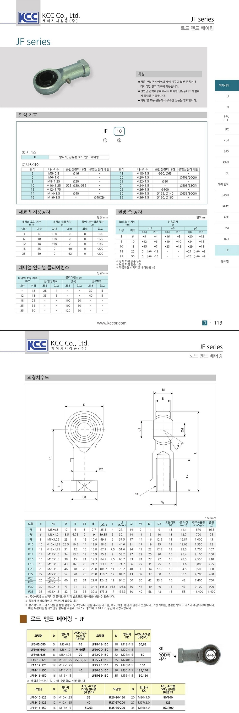 JF 시리즈 암나사 급유형 로드엔드베어링