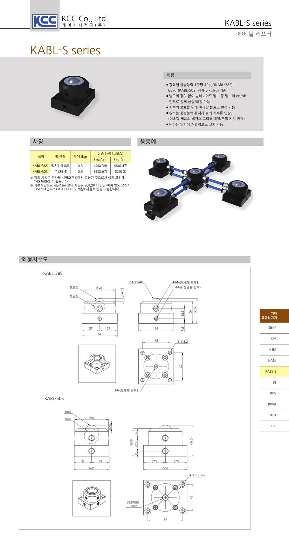 볼 재질 기본사양 SUJ2 (베어링강) 이며, 별도 요청시 STS (스테인리스) & ACETAL (아세탈) 재질 변경 가능합니다.
