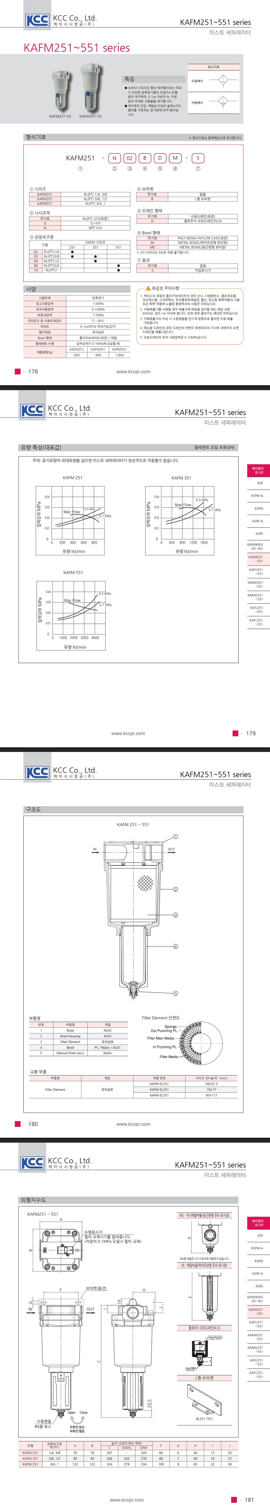 | 체크포인트 | 상세페이지 제품 사양 및 취급 시 주의사항 확인 후 적용 바랍니다. KAFM 시리즈 3/8' 사이즈는 251 과 351 선택 가능하며, 351 제품 크기가 더 큽니다. |