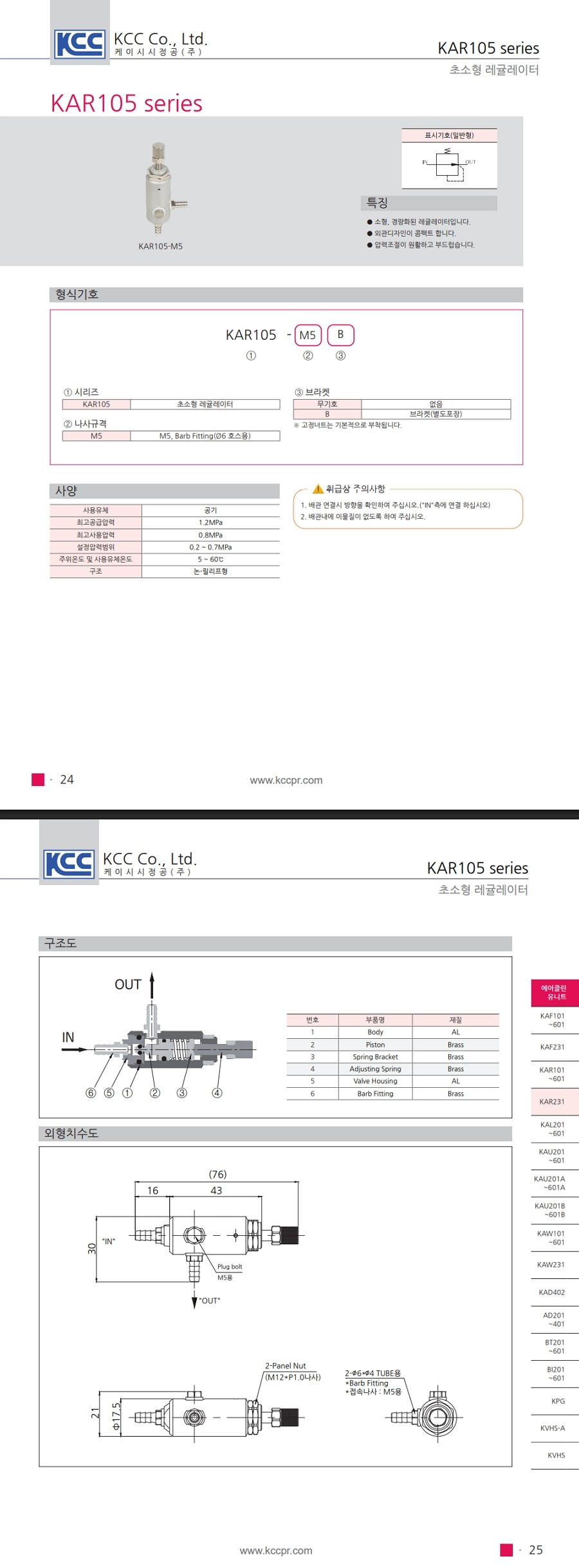 KAR105 시리즈 0.2~0.7 Mpa, M5-Barb Fitting (Ø6 호스용)