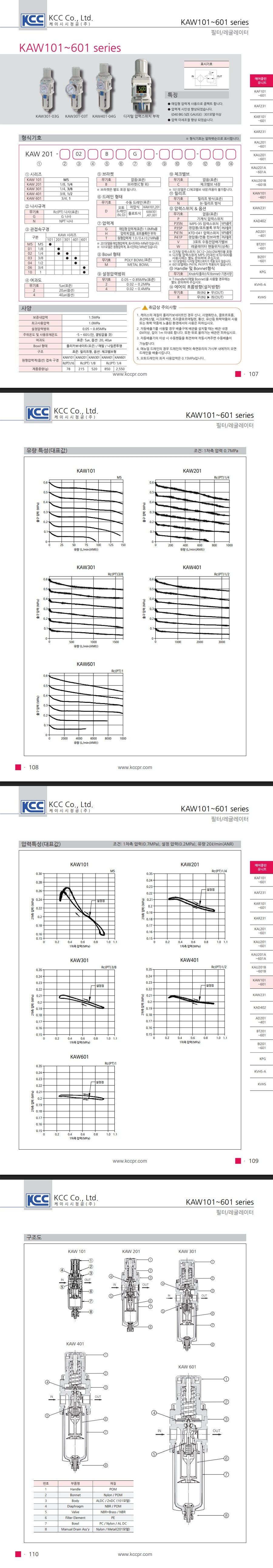 KAW 시리즈 M5~1(25A), 수동드레인, 0.05~1.0Mpa 여과도5㎛(표준), 릴리프방식, 정방향(에어흐름 좌에서 우)