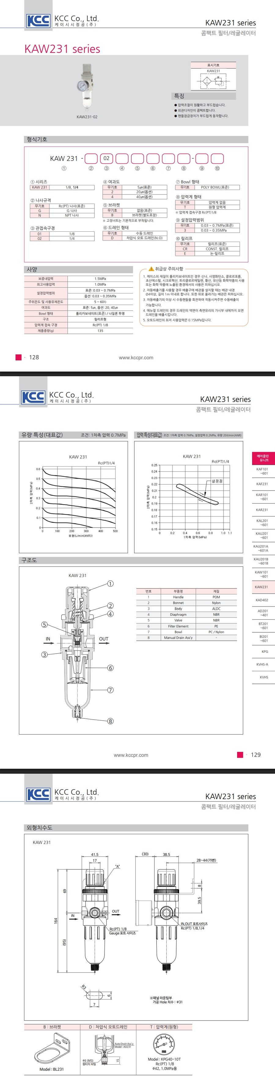 KAW231 시리즈 미니어쳐 Rc(PT) 1/4, 여과도 5㎛ (표준), 0.03~0.85Mpa 릴리프 방식