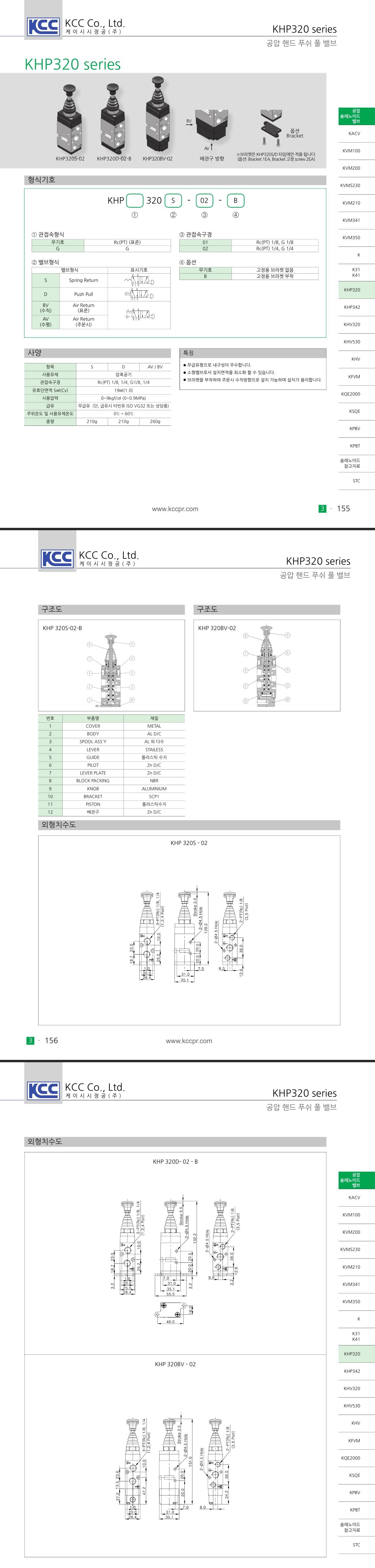 KHP342 시리즈 3포트 핸드 푸쉬 풀 밸브 Rc(PT) 1/8 1/4