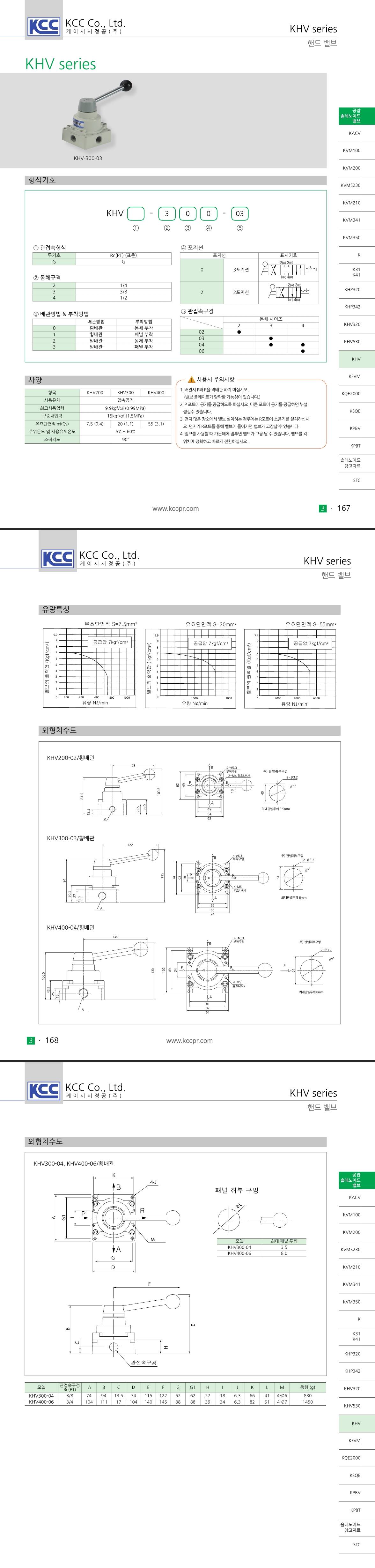 KHV200 300 400 시리즈 수동레버형 1/4 , 3/8 , 1/2 , 3/4