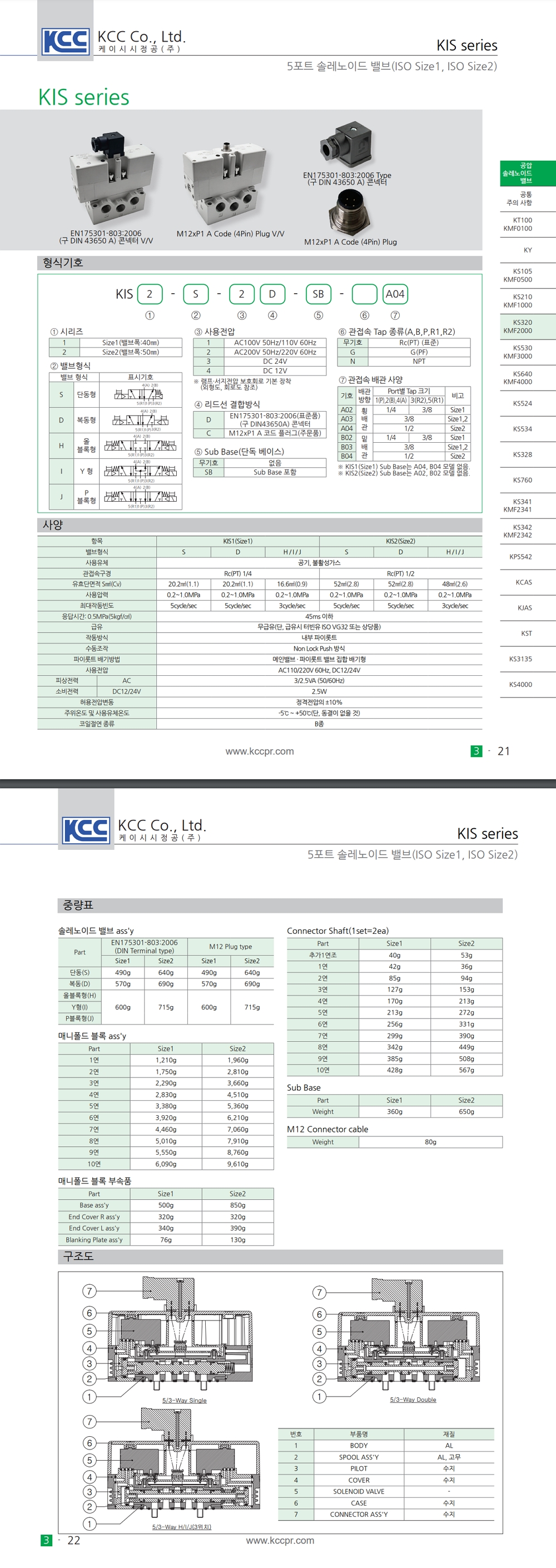 KIS 시리즈 5포트 ISO #1 밸브폭 40mm 1/4, 3/8