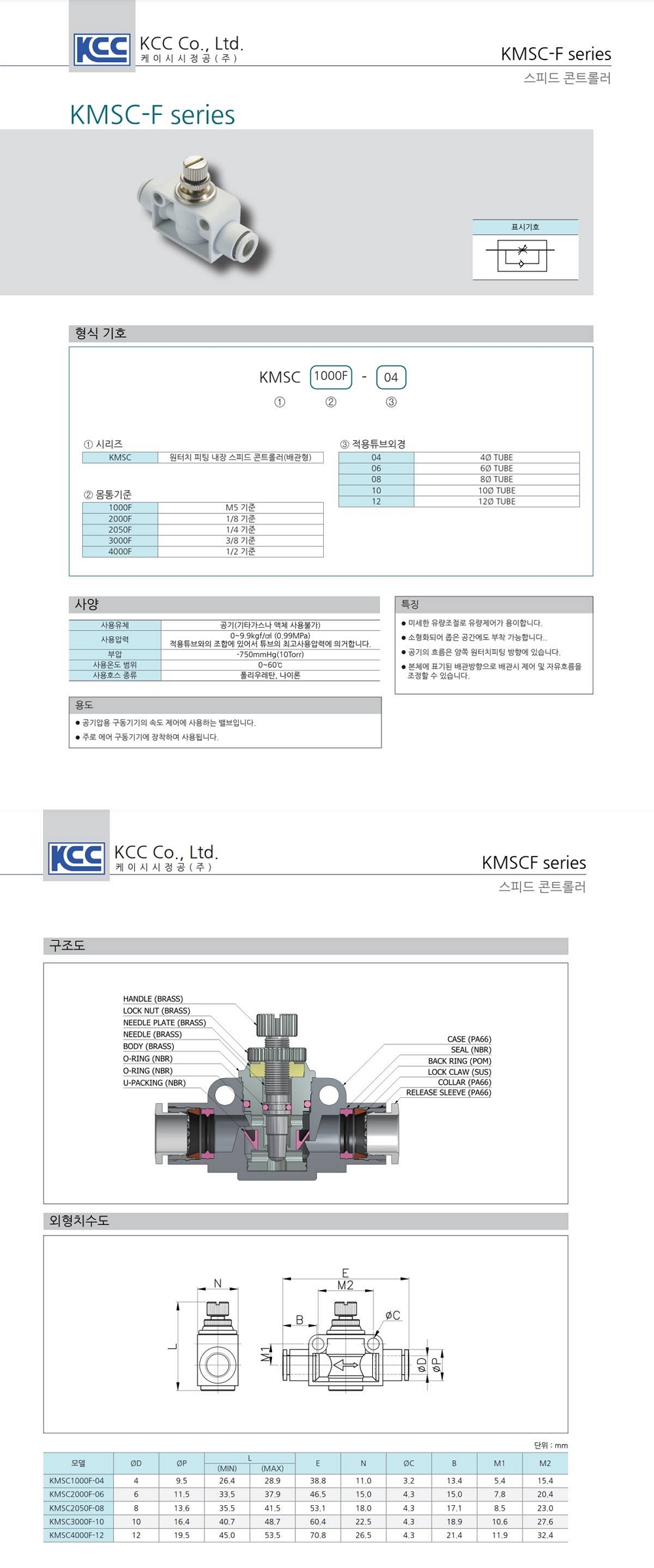 KMSC-F 시리즈 배관형 (아이보리) / 튜브(metric) - 튜브(metric)