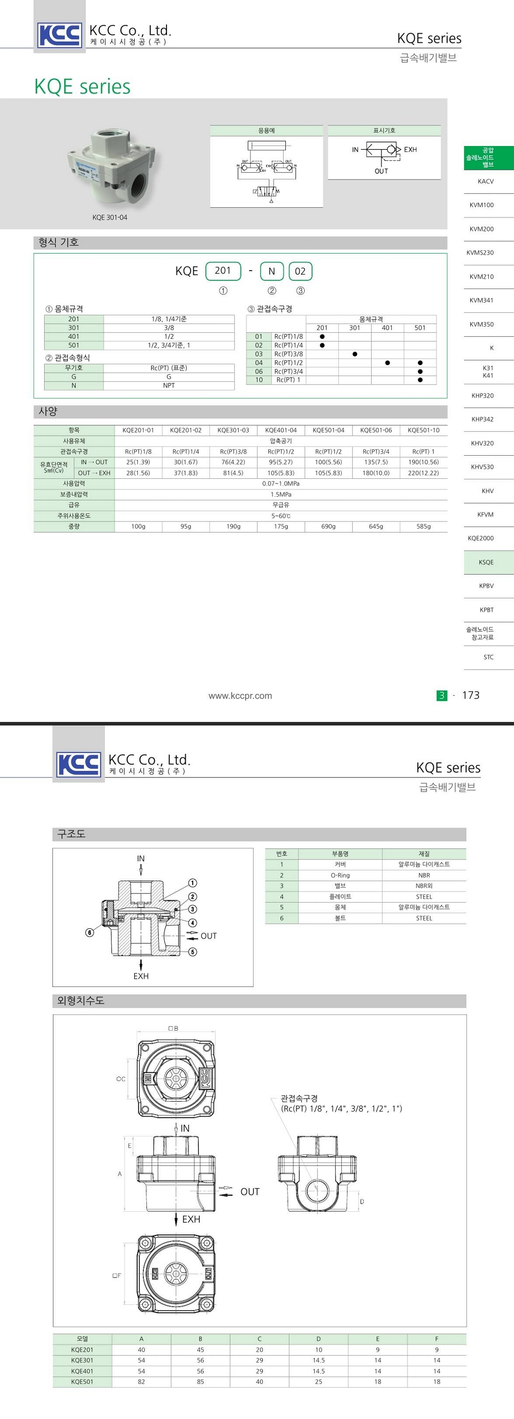KQE 시리즈 Rc(PT) 1/8, 1/4, 3/8, 1/2, 1 인치 급속배기